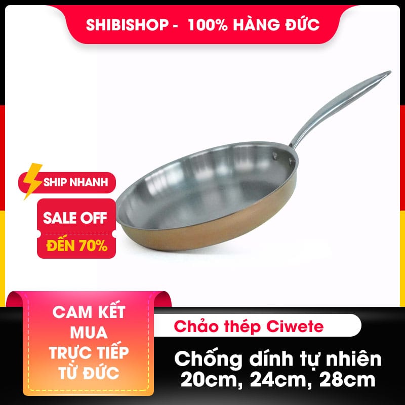 Bạn đang tìm một chiếc chảo chống dính an toàn, không hóa chất, không bong tróc lớp phủ sau thời gian ngắn sử dụng? Hãy để chảo thép chống dính tự nhiên Ciwete – sản phẩm cao cấp đến từ công nghệ đúc liền nguyên khối, chinh phục bạn ngay từ lần đầu sử dụng. Hiện sản phẩm đang được phân phối chính hãng tại ShibiShop, với đủ kích cỡ: 20cm, 24cm và 28cm phù hợp cho mọi nhu cầu nấu nướng trong gia đình.