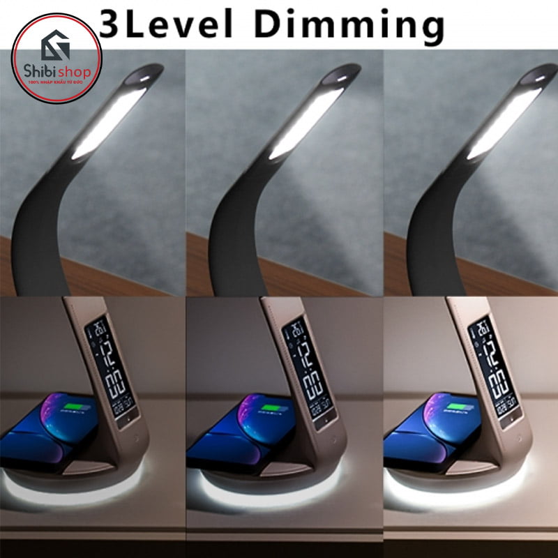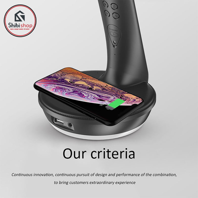 - Đèn thiết kế tích hợp nhiều chức năng 6in1: Đèn bàn; Hiển thị ngày giờ, nhiệt độ và đặt báo thức; Chức năng bộ nhớ; Sạc không dây chuẩn Qi.