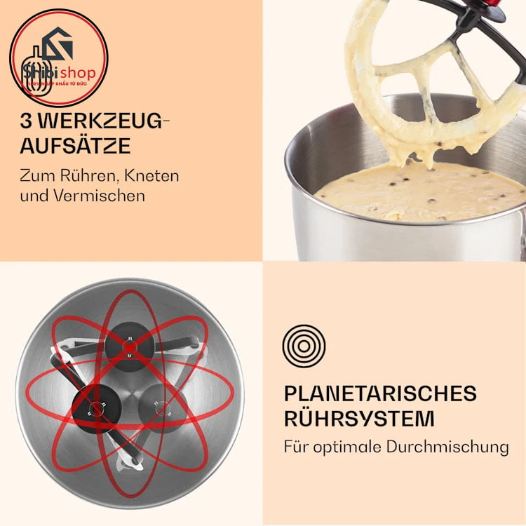 3 tính năng tích hợp trong máy trộn bột đa năng Klarstein lucia morena 1200w gồm:
